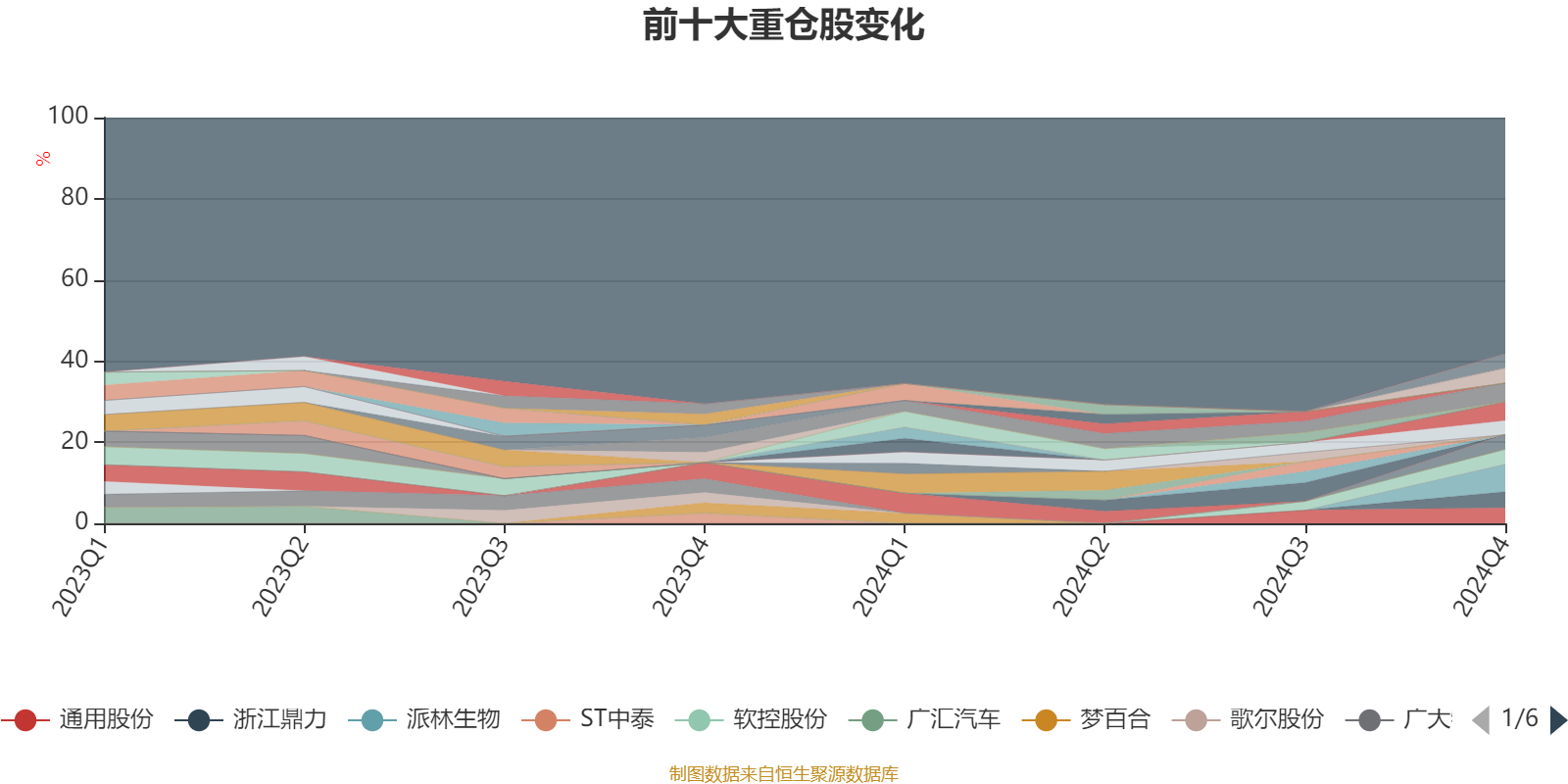截至2024年末,基金十大重仓股分别是派林生物、中国动力、中联重科、浙江鼎力、通用股份、台华新材、软控股份、正泰电器、伊利股份、南方航空。