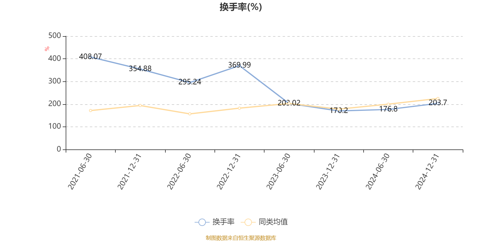 截至2024年12月31日,基金最近一年换手率约382.47%,持续2年低于同类均值。